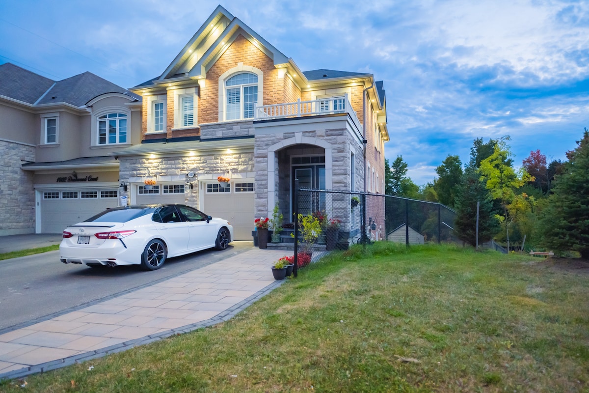 Kjo shtëpi e ndritshme dhe e ajrosur me 4 dhoma gjumi 3 banjo është e përkryer për një pushim familjar ose me miqtë. Internet me shpejtësi të lartë dhe shërbime të plota. Minuta nga Deercreek Golf Course, spa e RE Thermëa, restorantet më të vlerësuara, supermarketet dhe pazaret. Qasje e lehtë me autostradë 401 ose 407/412. 45 minuta me makinë deri në qendër të Torontos. 10 minuta me makinë deri në stacionin e trenit Whitby GO. E përkryer për familje, udhëtim biznesi ose pushime në fundjavë, qëndrimi yt këtu është i përshtatshëm dhe i lehtë. Qëndrime afatgjata të mirëseardhura.