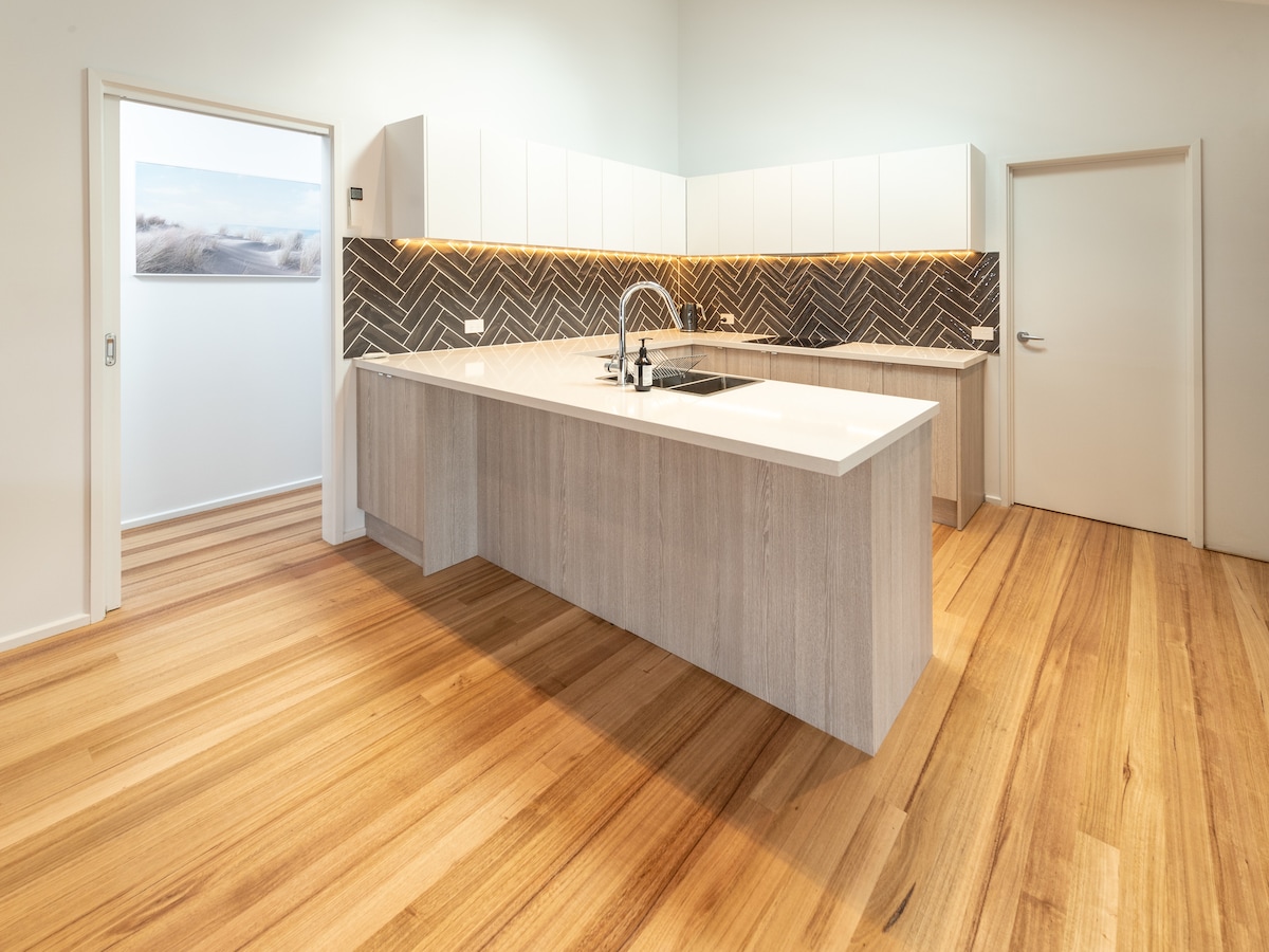 E ndodhur vetëm 100 metra nga Anglesea Main Beach, shtëpia jonë ndodhet në mënyrë të përkryer për pushimet e tua bregdetare. Kjo perlë e fshehur është e mbushur me hapësirë të bollshme në natyrë për t 'u çlodhur në privatësi, si dhe vetëm disa minuta më këmbë për të pirë kafe të shkëlqyer. Shtëpia është e përbërë nga 3 dhoma gjumi (2 mbretëresha + 1 krevate King). Mbushur me art, libra, një divan të madh të rehatshëm dhe oxhak për furrë me dru në kuvertën e re të madhe private. Ne jemi miqësorë me familjen, por ju kërkojmë të respektoni të gjitha gjërat që kemi lënë aty për t 'u kënaqur.