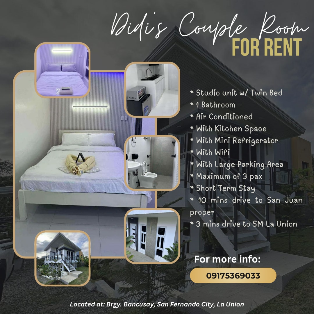 If you are looking for a place to stay near Urbiztondo San Juan, La Union surfing area, book with us and enjoy the view of the sea and sunset. Spacious, wide with secured free parking space. Also provided with Shower Heater, Wifi and Netflix. Visit also Units 12, 3, 4, 5, 6, 7 and Loft House