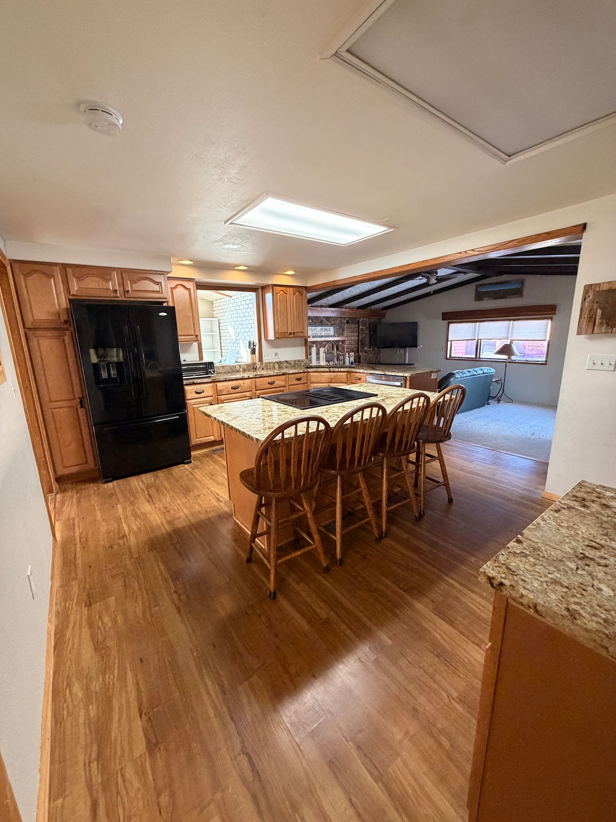 Kjo 3 dhomë gjumi, 2 binjakë dhe një përmirësim i kohëve të fundit në një krevat të ri dopio "king" në dhomën kryesore të gjumit, një banjë me vaskë/dush. Leiniumi i ri i kuzhinës i shton bukuri zonës së ngrënies. Kjo shtëpi e lëvizshme është e pastër dhe e thjeshtë. Ka një oborr të gjerë të rrethuar me gardh për fëmijët dhe qentë. Ka një verandë të bukur për të shijuar mbrëmjet. Jemi miqësorë dhe i duam njerëzit. Normalisht jemi në dispozicion për pyetje ose ndihmë. Nëse po kërkon një vend të arsyeshëm dhe të rehatshëm për të qëndruar, na provo.