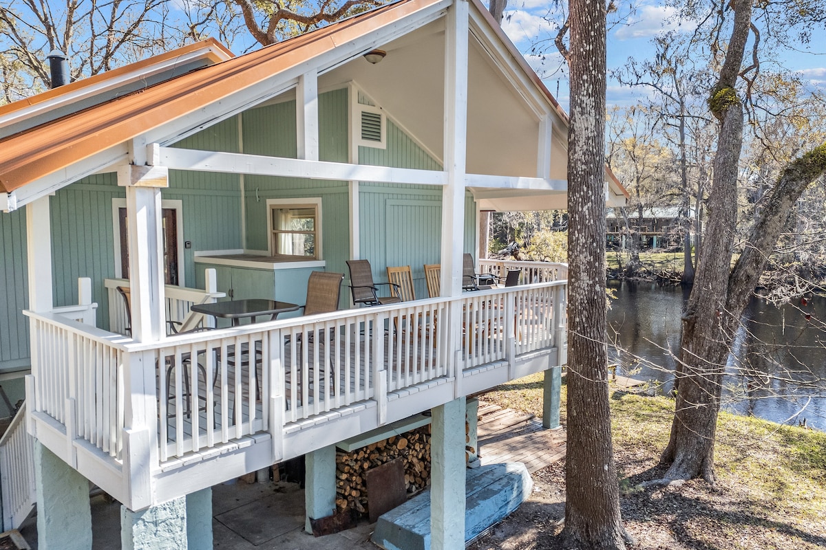 E vendosur në Branford, FL, përgjatë lumit piktoresk Suwannee në Hatch Bend, kjo shtëpizë me tre dhoma gjumi dhe tre banja është e përkryer për pushime në fundjavë ose qëndrime të zgjatura. Në katin e sipërm ndodhen dy dhoma gjumi "king" me banja ngjitur, një ambient ndenjjeje të rehatshëm me oxhak me gaz dhe një kuzhinë moderne të pajisur plotësisht. Në katin e poshtëm ofron një dhomë gjumi "king", banjë të plotë, kuzhinë dhe hapësirë ndenjjeje. Një ashensor i mbyllur e bën pajimet e transportit të lehtë. Përjeto rehatinë, sharmin dhe bukurinë e lumit Suwannee në pushimin tonë!