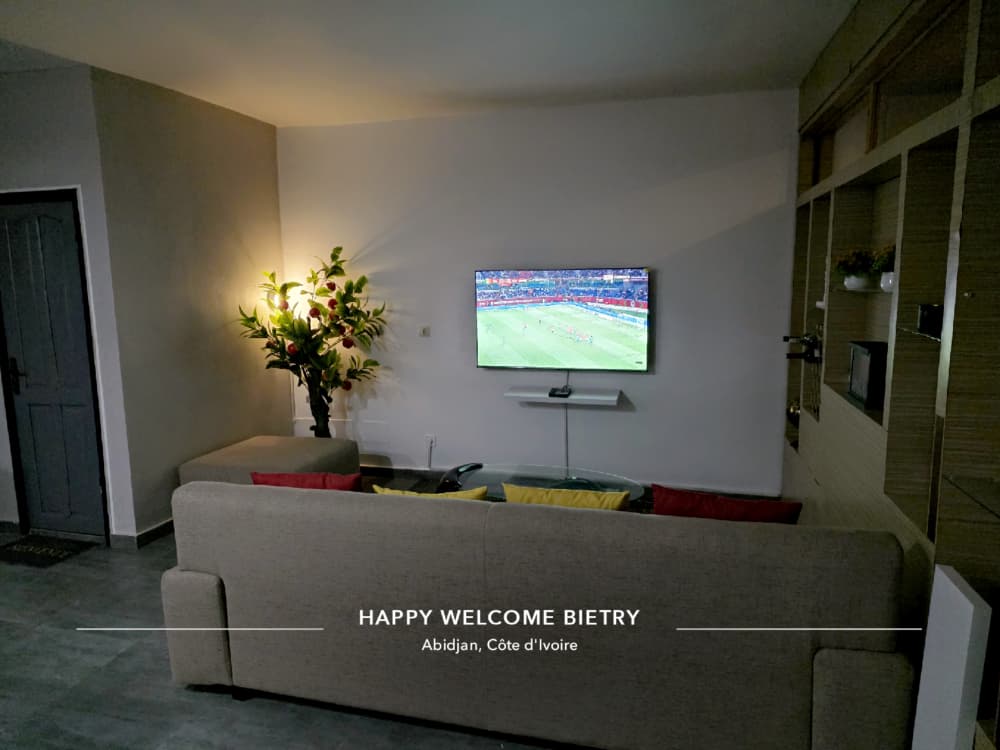 Apartament i madh (dhomë gjumi, kuzhinë dhe dhomë ndenjjeje e veçantë) Ndodhet në një nga zonat më të mira të Abidjanit dhe ndodhet në një rezidencë të sigurt. Është vendi ideal për të shijuar qytetin gjatë një qëndrimi të shkurtër ose të gjatë. Do të ndihesh si në shtëpi këtu! Ideale për beqarë, çifte ose miq, vizitorë, qëndrim biznesi. Kjo banesë është komode dhe moderne. Do të gjesh një kopsht privat, si dhe të gjitha shërbimet e nevojshme për një qëndrim cilësor.