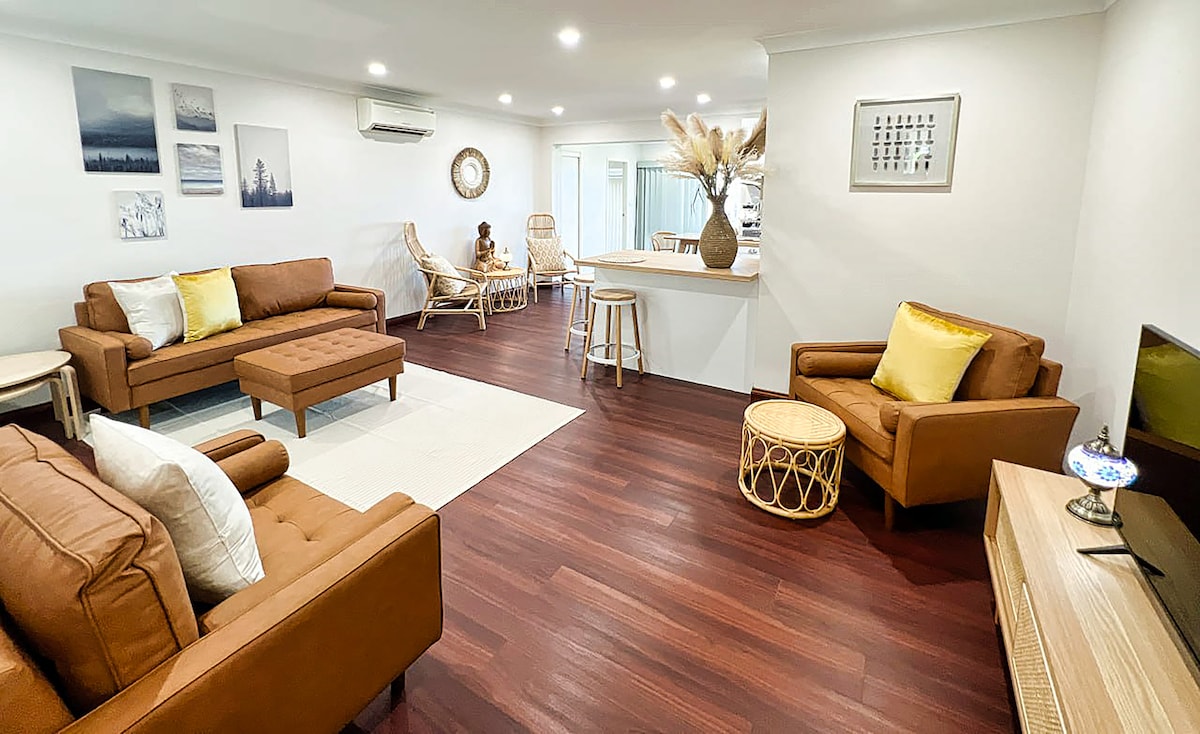 Kalo në një nivel të ri paqeje dhe qetësie në këtë oaz magjik të përshtatshëm për familje. Nuk do të duash të largohesh! 🧘🏼♀️ E vendosur në liqenin Budgewoi, kjo pronë është një makinë e lehtë nga Sidnej. Hyrje e drejtpërdrejtë në liqen dhe shteg biçikletash, kajak, biçikletë ose peshk vetëm hapa nga dera e pasme. Kemi 2 kajakë dhe 4 biçikleta për të rritur në vend për kënaqësinë tënde. Banja kryesore dhe banja ngjitur lart dhe dhoma e pluhurit poshtë, ajri i kondicionuar me cikël të kundërt e bën këtë shtëpi të përsosur për çdo qëndrim!