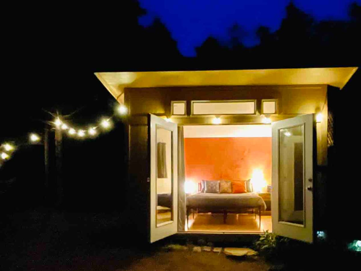 Arratisje e qetë në natyrë - minuta nga plazhi. Hiq nga priza dhe rinovohu në qetësinë e një pylli të vjetër Redwood. Kabina e Shenjtërores së Natyrës ka një krevat të rehatshëm dopio "queen", dyer franceze me pamje nga drunjtë e lartë, oxhak romantik prej xhami të pajisur me dru, dush të nxehtë në natyrë brenda një korije me dru të kuq, gropë zjarri, barbekju, drita diellore me tela, hamak dhe hapësira të jashtme të qeta. Pamje nga oqeani nga pjesa e përparme e pronës. Rrethuar nga milje pyje dhe me makinë të lehtë për në trenin Skunk dhe plazhin prej xhami.