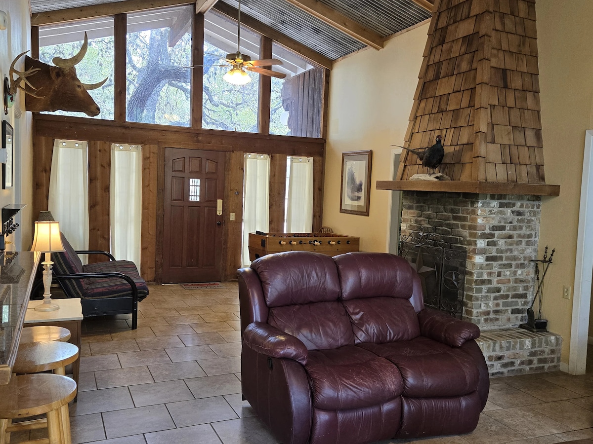 Mirë se vjen në oazin tonë të qetë prej 10 hektarësh, që ofron pamje spektakolare të Parkut Shtetëror Garner dhe Rio Frio! Ajo premton një pushim luksoz të zhytur në ambientin mahnitës natyror, vetëm 5 minuta nga parku dhe hyrja në lumë. Dizajni unik dhe atmosfera relaksuese do të të bëjnë të dëshirosh të qëndrosh përgjithmonë!! Pishinë ✔ luksoze ✔️ 6 dhoma gjumi 20 ✔ Open Design Living ✔ Kuzhinë e kompletuar ✔ Sallë lojërash ✔ Tarraca të jashtme (me ulëse) ✔ Prona (gropë zjarri, kafshë të egra, shesh lojërash) Televizorë ✔ inteligjentë Wifi ✔ me shpejtësi të lartë