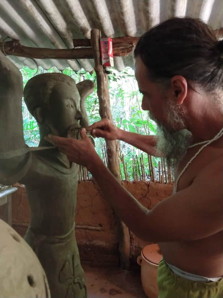 Krijoni një pjesë qeramike me udhëzimet e qeramikës Alex Botega, i cili është skulptori i maskave të Pirenópolis-GO.