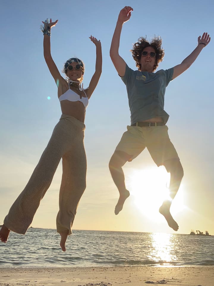 Një ditë e mrekullueshme në varkë!! E prenotuam këtë përvojë dhe ishim pak hezitues sepse nuk kishte recensione të tjera të listuara, por Jordan na dha një sfond të vogël të kompanisë me shumë recensione të shkëlqyera në Google! U kënaqëm shumë duke u endur nëpër ishuj dhe gjetëm një tufë dollarësh rëre, guaska dhe madje edhe një yll deti! Uji ishte jashtëzakonisht i pastër rreth të dy ishujve, gjë që e bëri atë të ndihej kaq magjike. Vetë anija është e paprekur dhe kaq e rehatshme për 6 persona - në bord ka një ftohës me akull, i cili ishte i përshtatshëm për të gjitha pijet dhe ushqimet tona që sollëm me vete. Pamë kaq shumë delfinë dhe Jordan madje e drejtoi varkën në mënyrë që ata të kërcenin në valët pas nesh!