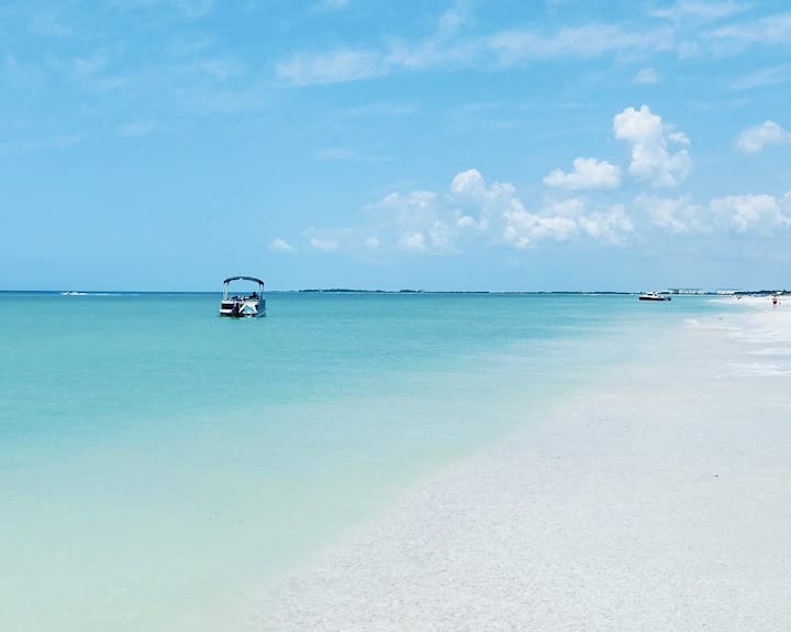 ndalo në thesare të fshehura! Caladesi, Honeymoon dhe Three Rooker. Sill ushqimin dhe pijet e tua, frigoriferi është i disponueshëm.