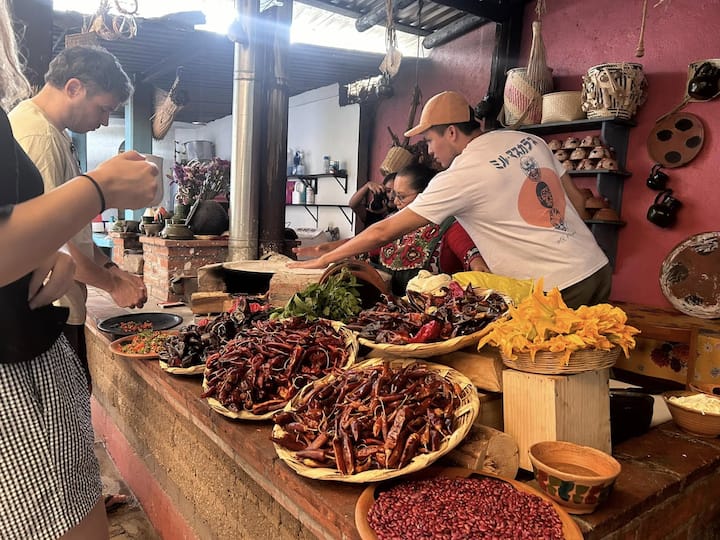 Një përvojë autentike me kuzhinieren e njohur Doña Juana Amaya y Wens. Ku do të mësosh të bësh një drekë, një mole, ëmbëlsira dhe degustimin e 3 moleve më të njohura të Oaxaca
