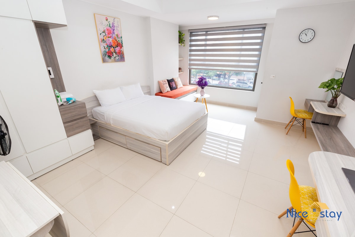 Are you travelers seeking a comfortable short stay during layovers? Here you go! Enjoy a cozy and hassle-free experience, perfect before leaving to your next adventure. We are Le Lotus Blanc Saigon. ♥ Location: next to Tan Son Nhat Airport (5-10 min by walking) ♥ Floor: Room 104, 1st floor in building with lift ♥ Size: 30sqm ♥ Type: Studio ♥ With 200m : restaurants, supermarket, convenience stores, pharmacies, coffee shop, hair salon-nails...