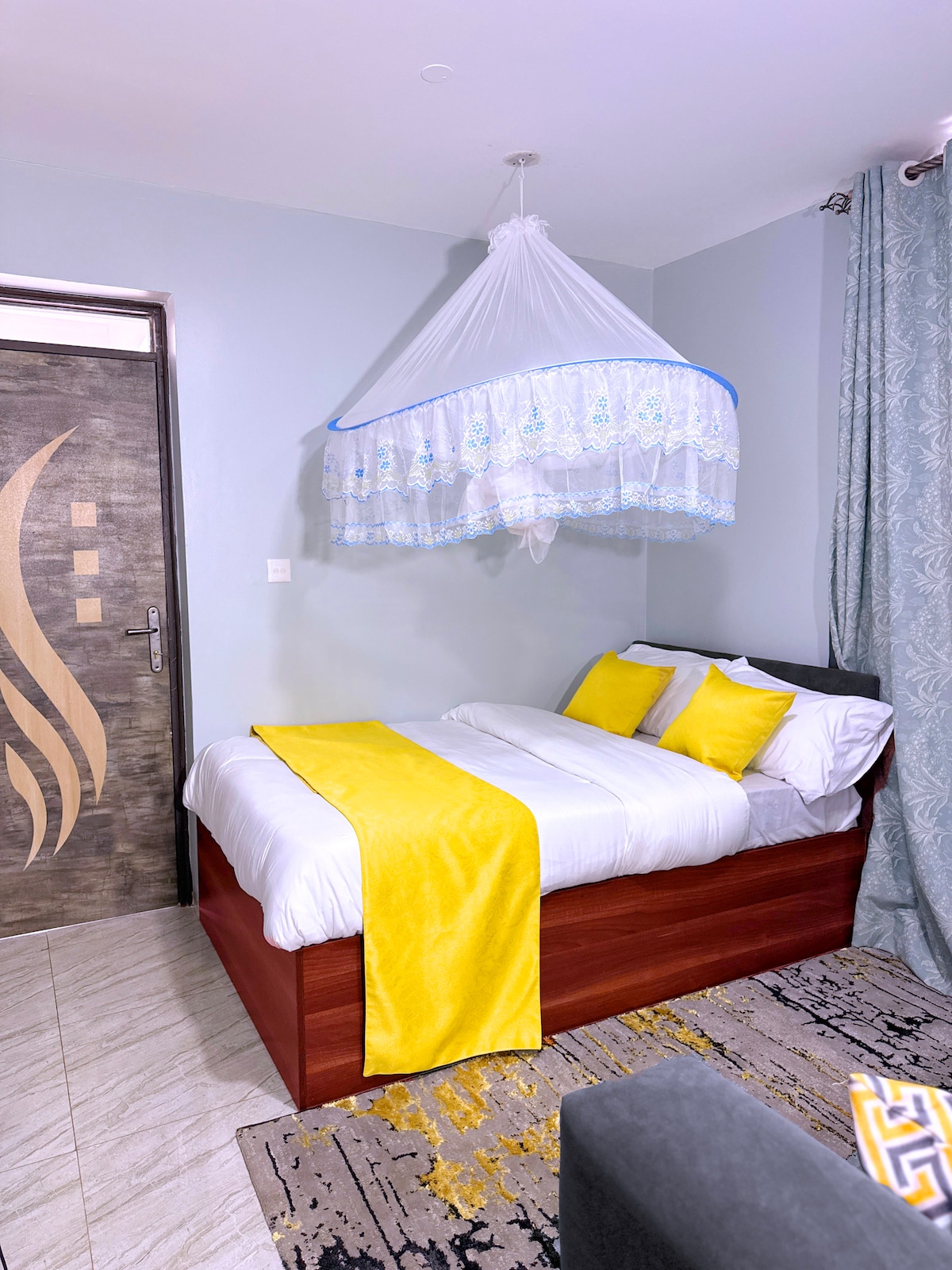Përjeto rehatinë e apartamentit tonë të gjerë me një dhomë gjumi, të vendosur brenda një ndërtese të re luksoze në Kampala. Si shtëpia jonë e dashur familjare gjatë vizitave, kjo banesë ofron një prekje personale të qëndrimit tënd. Ndërsa apartamenti ka tre dhoma gjumi, vizitorët do të kenë qasje ekskluzive në dhomën kryesore të gjumit me suitë, dhomat e mbetura do të mbeten të pabanuara, duke siguruar privatësi të plotë. Shijo pamje mahnitëse dhe një suitë shërbimesh moderne të krijuara për një qëndrim të paharrueshëm.