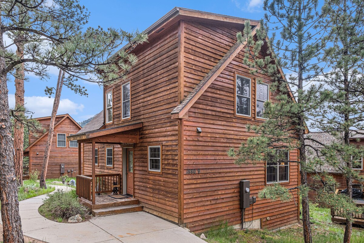 I rimodeluar plotësisht! Apartament kondominial i rehatshëm në malin 2 BR 2, i vendosur drejt e në Pyllin Kombëtar të Ruzveltit dhe vetëm disa hapa nga lumi i zhurmshëm i vjeshtës. Veranda private ofron pamjen më të mahnitshme me pamje nga të gjitha. Shijo kafenë e mëngjesit atje duke parë kafshët e egra, ose verën e mbrëmjes duke u zhytur në vaskën me hidromasazh. Është e sigurt që do të qetësojë shpirtin! Ambienti i brendshëm ka një atmosferë të ëmbël moderne/vintage, duke përfshirë disa murale të personalizuara eklektike argëtuese. Më e mira nga të gjitha është vetëm disa minuta nga hyrja e RMNP dhe Estes në qendër të qytetit. Wi-Fi