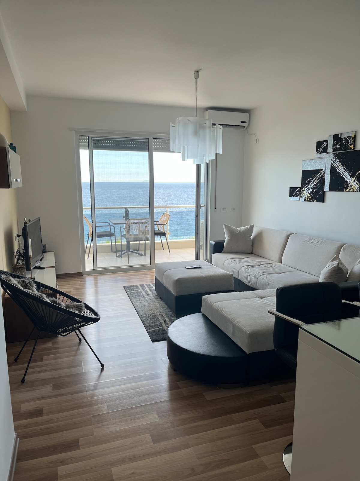 Beachfront luxury apartment located in the heart of Saranda ,Albania. With its central location, you'll have easy access to all the amenities you need for a memorable vacation, including restaurants, cafes, and shops. The apartment is beautifully designed and fully equipped with everything you need to make yourself at home. You'll find a comfortable living room, a fully equipped kitchen, a relaxing bathroom and a spacious balcony where you can soak up the stunning views of the sea and the city.