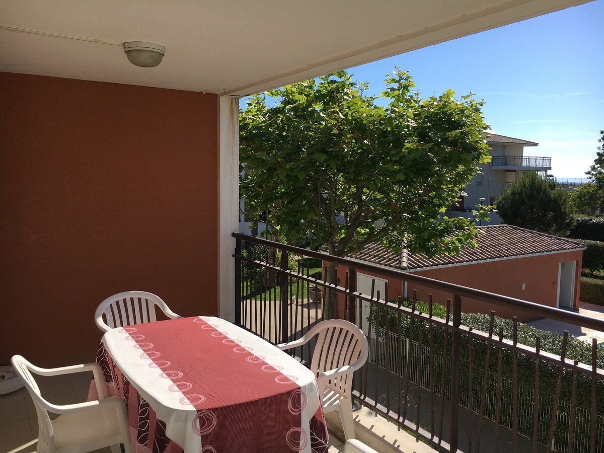 Logement de 31 M2 avec terrasse de 8 M2 , à 50 m de la plage ,avec belle vue latérale de la mer. Parfait pour les couples, familles avec enfants .Il fera le bonheur des amateurs de la plage ,des amoureux de la nature en arrière saison, piste cyclable pour ballades vélo.Parking privé sécurisé .Proche de sète et du cap d'agde.ANIMAUX REFUSES.Draps,serviettes de toilette, torchons non fournis par le propriétaire. Sèche cheveux fourni. Lit parapluie ,chaise haute,baignoire bébé gratuitement.