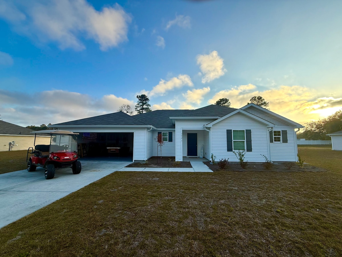 Welcome to The Dockside Dreamhouse! This coastal retreat, featuring 3 bedrooms and 2.5 baths, is located on the White Chimney River with a private deep water dock. Come enjoy the beautiful south Georgia coast! Catch crab and fish right off the dock, enjoy a cornhole tournament in the backyard, BBQ on the patio while watching the sunset, cozy up around the fire pit, and star gaze! Enjoy the 8 ft cowboy pool from March to October. Come relax and unwind on the coast. Pet friendly fenced in yard
