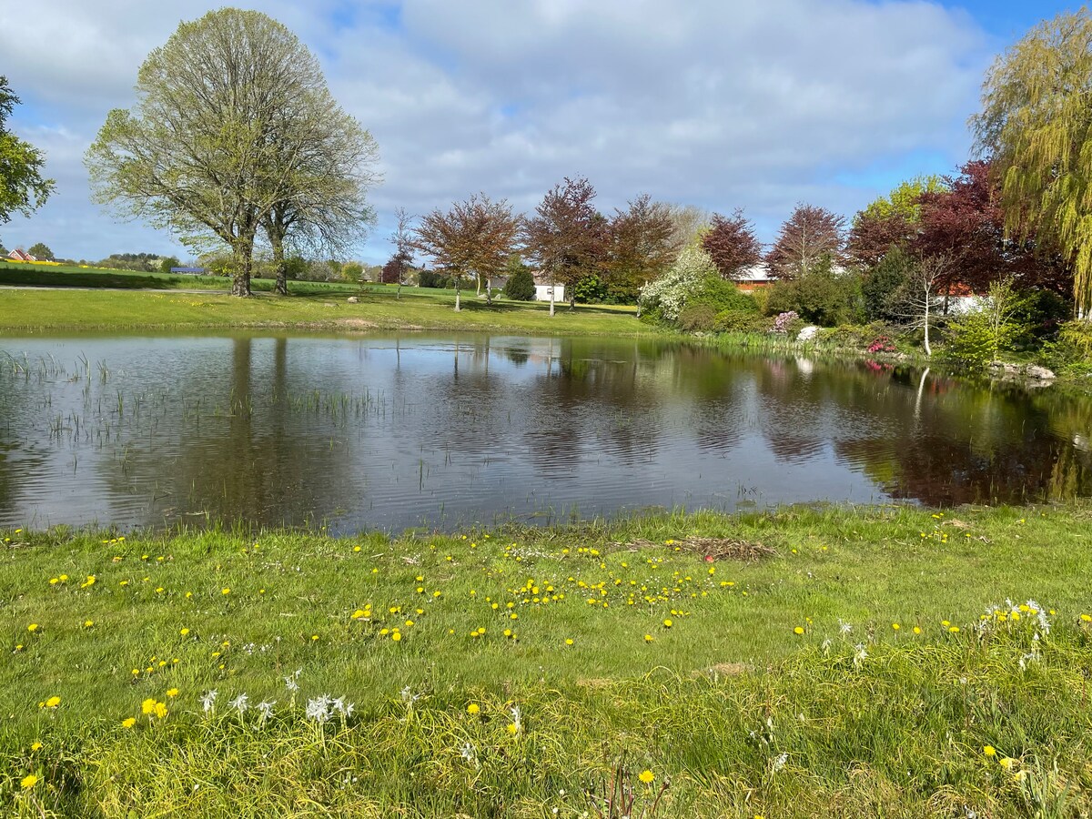 Ambienti për vizitorët që e duan natyrën. Relaksohu në këtë banesë 148m ² në mes të natyrës. Pronë unike e vendosur në ish gropën e zhavorrit, e cila tani është perla më e bukur natyrore. Me disa liqene dhe një zonë të madhe natyrore me kafshë të egra të pasura në oborrin e pasmë. Shtëpia përmban kuzhinë të madhe me hapësirë ngrënieje për 8 persona. 2 dhoma ndenjjeje, një me divan krevat (140 cm). 3 dhoma me gjithsej 6 dhoma gjumi (2 krevate tek, 2 krevate dopio me 160 cm dhe 180 cm) dhe banjë me dush. Paketa e çarçafëve dhe pastrimi.
