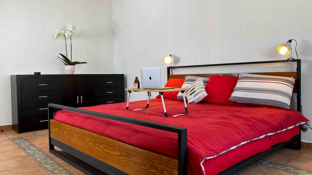 Shijo një përvojë elegante në këtë ambient me pozicion qendror që ndodhet 10 minuta larg qendrës së qytetit dhe 10 minuta larg Montealbán. Ke një qendër të madhe tregtare me kinema dhe dyqane vetëm 3 minuta larg. Rrugë e qetë pranë formularit të policisë. Ka një mini-kuzhinë të kompletuar. Dy televizorë (55 dhe 32) Një krevat dopio "queen". Një krevat divan. Tifoz. Opsioni për parkim. Kamera sigurie. Ujë i shtyrë