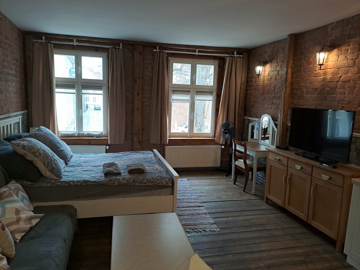 Apartamenti ndodhet në ndërtesën historike të banesës me emrin "Shtëpia e kryebashkiakut". Në të kaluarën ishte vendi i zakonshëm i banimit të Olsztyn, ish-shtëpi. Konsiderohet të jetë banesa më e vjetër e mbetur e Prusisë Lindore. I përshtatshëm për çifte në dashuri, familje me fëmijë dhe qëllime turizmi. Vlerësohet për rehati, stil, privatësi, atmosferë shtëpiake, komoditet dhe vendndodhje qendrore. Objektet moderne dhe madhësia 43 m2 e bëjnë atë ideal për qëndrime të shkurtra, si dhe për qëndrime më të gjata.