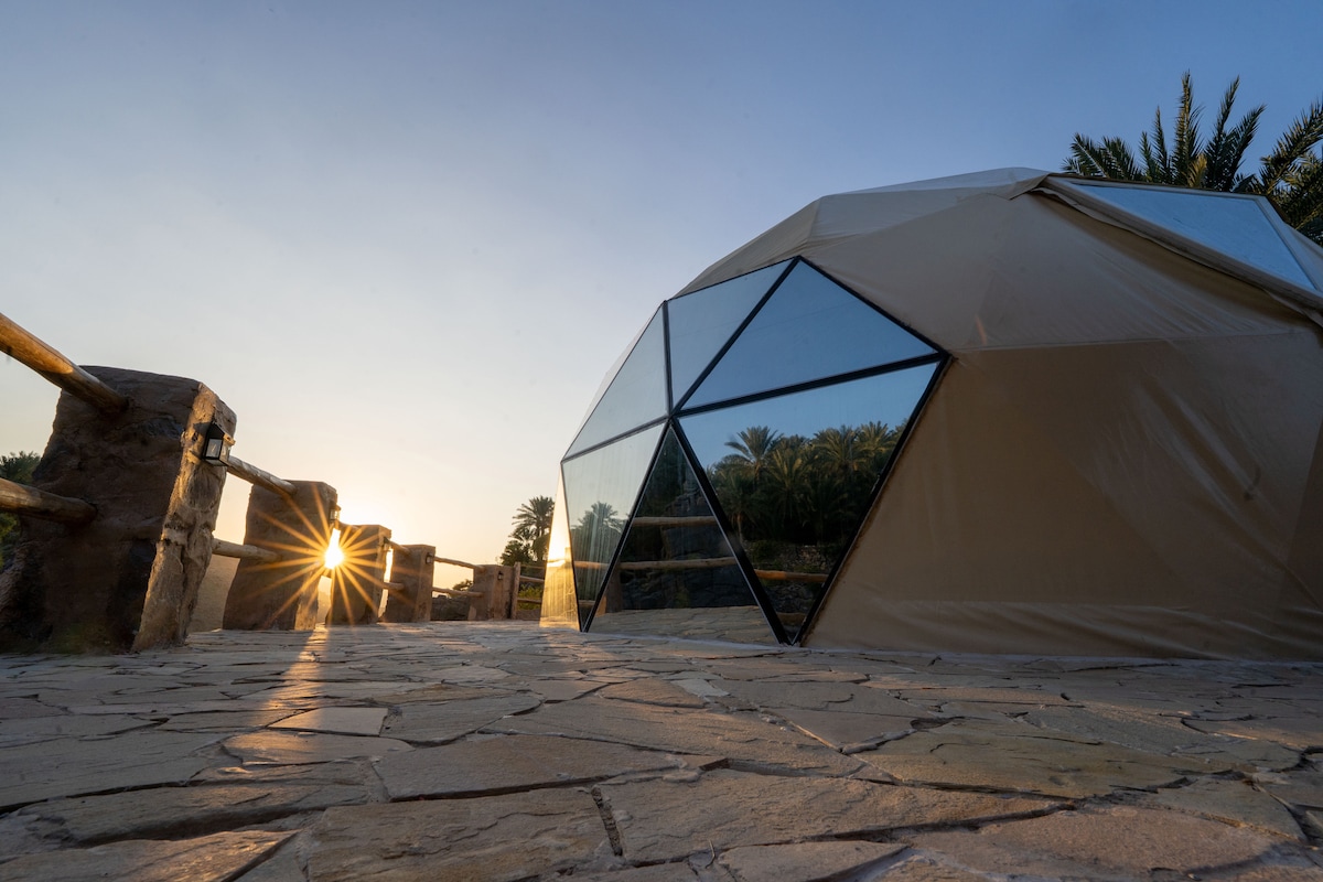 Largohu nga të gjitha në Rabwa Dome Retreat, një qëndrim romantik në një kupolë gjeodezike në Misfat Al Abriyeen, Guvernatorati Ad Dakhiliyah, Oman. E përkryer për çifte ose familje të vogla, kjo shtëpi me kupolë ka një krevat dopio "king", vaskë, zonë për barbekju dhe një vatër të rehatshme zjarri. I rrethuar nga tarraca mahnitëse dhe qiell me yje, ky strehë ekologjike që punon me energji diellore ofron përzierjen ideale të rehatisë, natyrës dhe sharmit autentik të Omanit.