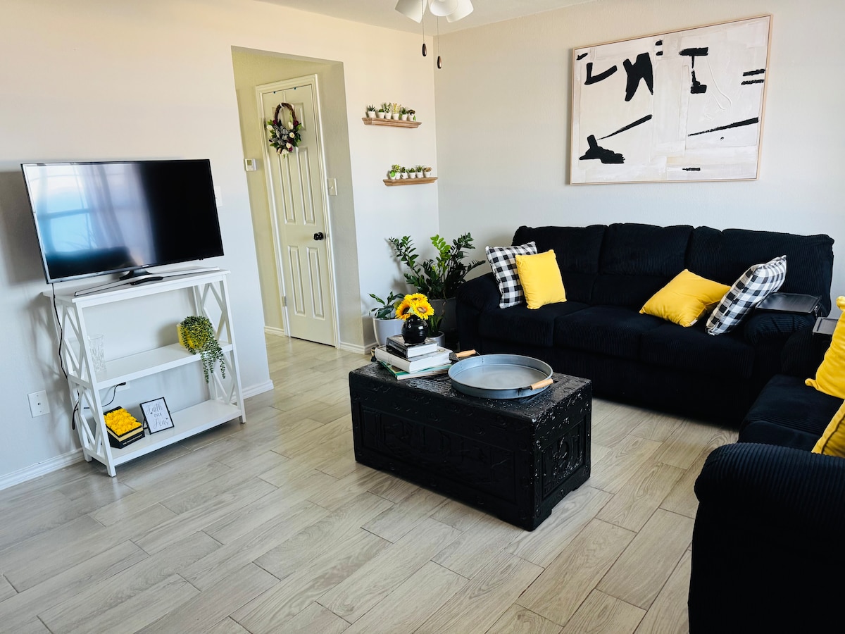 Mirë se vini në banesën tonë elegante bohemiane që ndodhet vetëm pak minuta nga restorantet, dyqanet, qendra tregtare, filmat dhe aeroporti. Në kufi me Mcallen. Pavarësisht nëse po kërkon një fundjavë të shpejtë pushimi ose qëndrim të gjatë, apartamenti ynë kondominial 2BR 2BA është i vendosur në mënyrë të përkryer për të shijuar një kohë relaksuese me të dashurit e tu. Je pranë S. Texas Health System, Gold's Gym, Costco, Target, Top Golf, Jade Nail, Kumori Sushi, Cinemark dhe vetëm 7 minuta nga qendra tregtare La plaza dhe Mcallen Airport. 2 televizorë të disponueshëm.