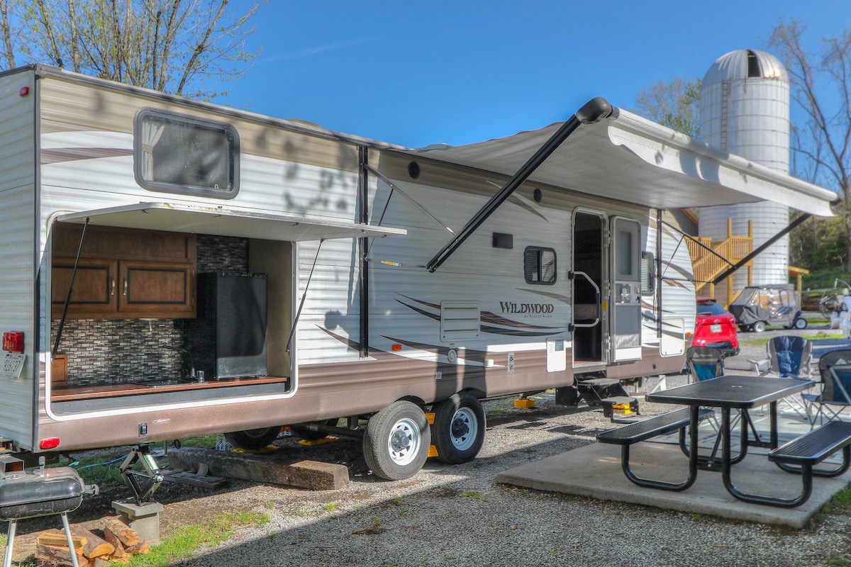 "Smoky Mountain Haven" 36' Creekfront RV me WiFi