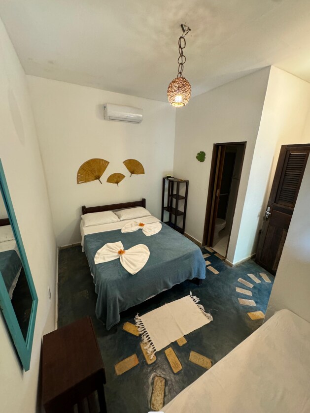 Suitë me dekorim të thjeshtë, shumë i gjerë dhe i ajrosur. Krevat dopio me televizor qiellor, minibar, hamak brenda dhomës, ballkon, sinjal wifi falas, dush i nxehtë. Rruga jonë është pa krye dhe shumë e qetë. Ne jemi të vendosur 600m nga plazhi i qendrës së Pipa dhe av. Baia dos Golfinhos ku janë restorantet, baret dhe dyqanet më të mira gjithsesi, më të mirat që këtu.