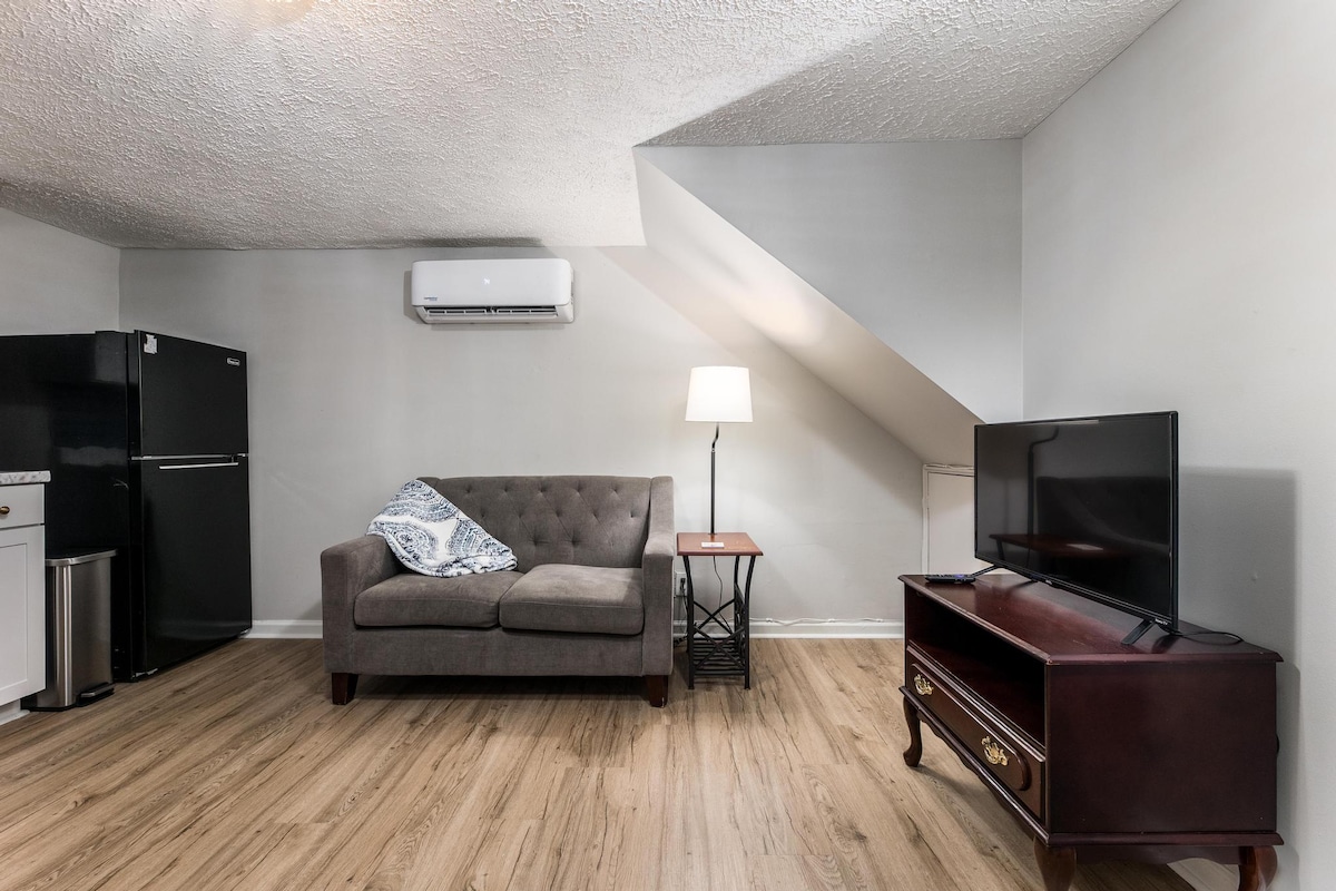 Një fotografi vlen sa një mijë fjalë. Kjo njësi është spektakolare, elegante dhe e qetë. Një hapësirë e shkëlqyer për ata që duhet të punojnë në lëvizje. Hapat larg Atrium Health dhe minuta larg qendrës së Macon. ☞ Master w/ king Kuzhinë e pajisur☞ plotësisht + e pajisur Oborr i☞ jashtëm me ngrënie ngjitur Hapësirë ☞ e madhe banimi me futon Zyrë ☞ private me pamje të bukur ☞ Central AC + Ngrohje ☞ Parkim falas i disponueshëm ☞ Smart TV - të gjitha aplikacionet e disponueshme
