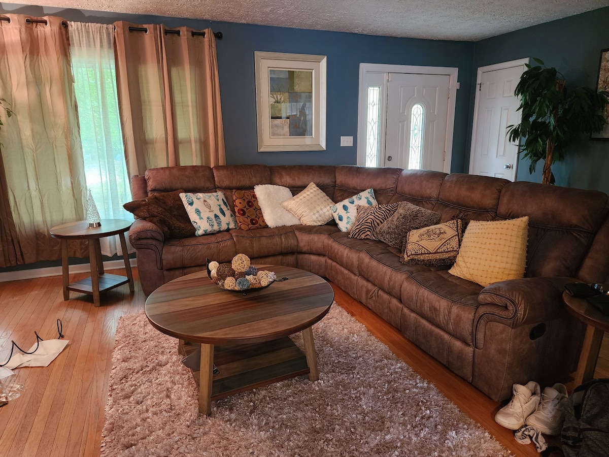 Shijo qëndrimin në vilën tonë të rehatshme, të vendosur në një lagje të qetë pranë lumit White (10 minuta nga qendra e qytetit dhe Broadripple; më pak se 5 minuta me makinë nga Newfields, 100 Acre Woods dhe Universiteti Butler; DHE më këmbë deri në Fermën e Fitnesit). Ndihu si në shtëpi në këtë vilë fshati plotësisht të mobiluar, me kuzhinën e saj të përditësuar, dhomën e gjumit të rehatshme dhe dhomën e ndenjjes të përshtatshme për teknologjinë, të pajisur me Wi-Fi me shpejtësi të lartë, Netflix dhe YouTube TV. Ka edhe një oborr privat me një gropë zjarri për të shijuar!