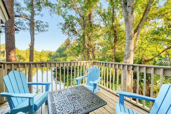 "ISLAND LIFE" është një bungalow magjepsës me 3 dhoma gjumi në Sea Pines, një shëtitje e shkurtër deri në plazh/pranë pishinës së lagjes! E vendosur vetëm brenda Portës së Oqeanit, kjo tërheqje qëndron vetëm në një vend të pyllëzuar me përmasa të mëdha! Shijo një ballkon privat që mbikëqyr një lagunë të madhe natyrore që është e mbushur me kafshë të egra!