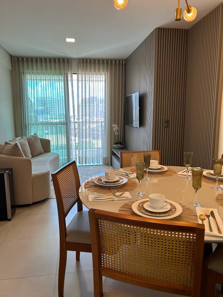 Apartamenti ynë i kompletuar dhe i mirëmbajtur është përgatitur me kujdes për detajet për të ofruar rehati, prakticitet dhe një qëndrim të qetë në Maceió.