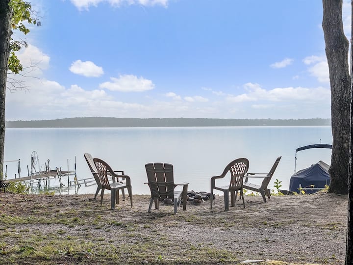 Zgjohu në mëngjes me tingullin e zogjve të ujit mbi ujërat e qeta dhe me dritën e parë të agimit të Liqenit Higgins. Shijo kafen tënde të freskët në verandë ndërsa dielli lind mbi South Bay. Liqeni Higgins ofron agime spektakolare nga moli yt privat, bregu, veranda ose zona e ngrënies me pamje nga lindja. Breg i butë që është i shkëlqyer për fëmijët; rërë në buzë të ujit me lodra. Port privat + bovë ankorimi (sezonale) për varkën tënde. Mbrëmjet nënkuptojnë ëmbëlsira pranë vatrës së zjarrit buzë ujit, dritat veriore dhe një qiell plot yje nga moli!