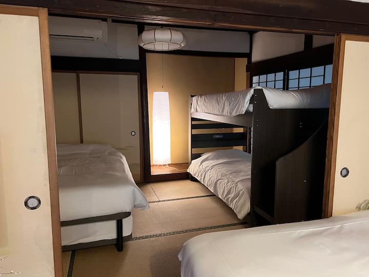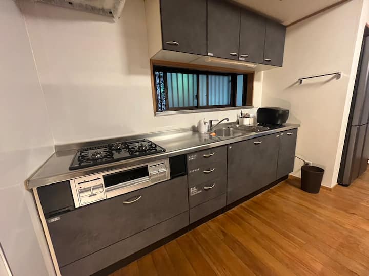 Shtëpia ka një kuzhinë të pajisur plotësisht, Wi-Fi të shpejtë dhe hapësira banimi të rehatshme. E përkryer për udhëtarët që kërkojnë një përvojë autentike japoneze me shërbime moderne.