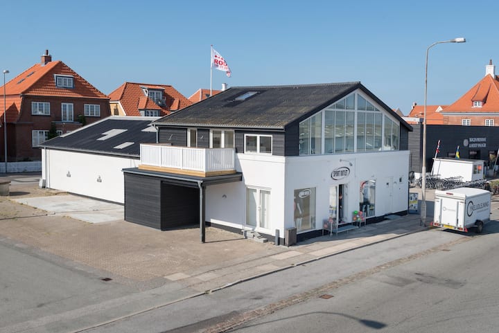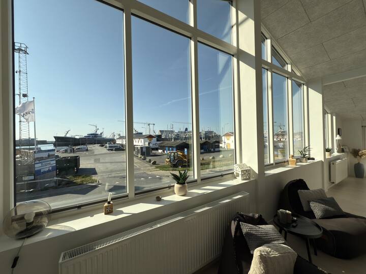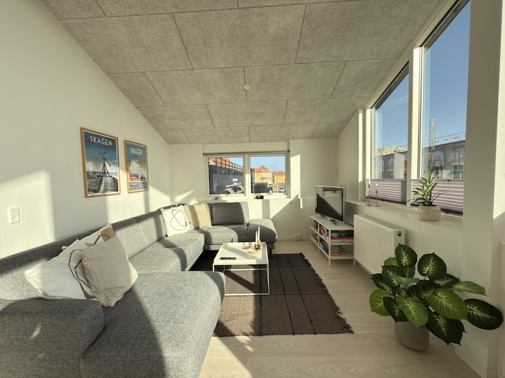 Apartamenti i pushimeve ka pamjen më të mirë absolute të qytetit të marinës së gjallë dhe të ngarkuar të Skagen. Dritaret e mëdha në të gjithë gjerësinë e apartamentit ofrojnë një përvojë krejtësisht unike të gjithçkaje që zhvillohet në portin Skagen dhe ke një pamje të drejtpërdrejtë të magazinave të kuqe /të bardha të peshkut Bindesbøll. Sot, ndërtesat e bukura strehojnë shumë restorante të vogla, si dhe Skagen Fiskerestaurant (prodhime deti) të mirënjohura të Skagen.