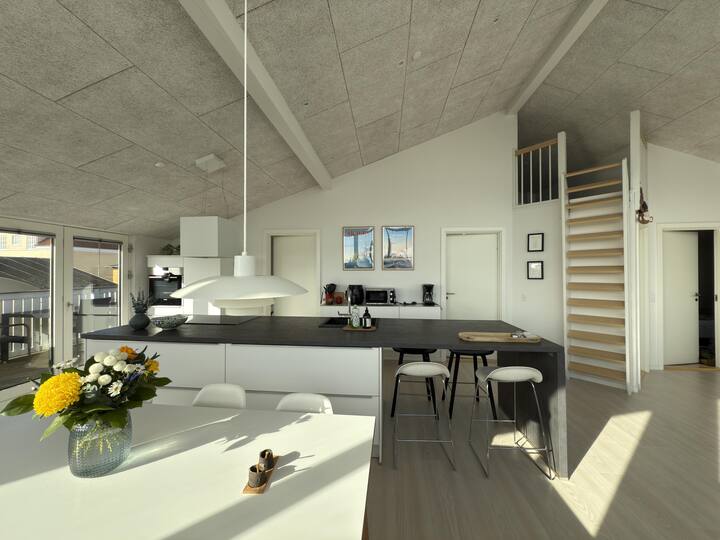 Nga dhoma e gjerë e ndenjjes në kuzhinë mund të mbash nën vëzhgim si anijet e mëdha të peshkimit ashtu edhe anijet më të vogla të peshkimit, jahtet dhe anijet e mëdha të lundrimit kur ankorohen në Skagen. Ju gjithashtu mund të ndiqni kamionët, të mbushur me mallra dhe kuti peshku, duke lëvizur mbrapa dhe me radhë përgjatë kalatës. Kalata më e afërt është vetëm 50 metra nga vetë apartamenti.