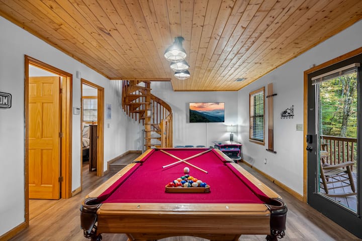 Super afër atraksioneve të Dollywood (1.2 milje) dhe Pigeon Forge në rrugë të lehta për t 'u përshkuar. Nuk ka rrugë të frikshme me erë ose të pjerrëta!