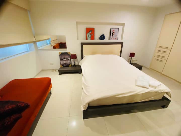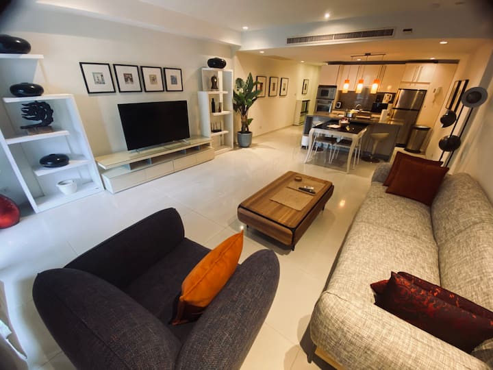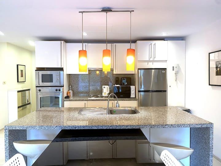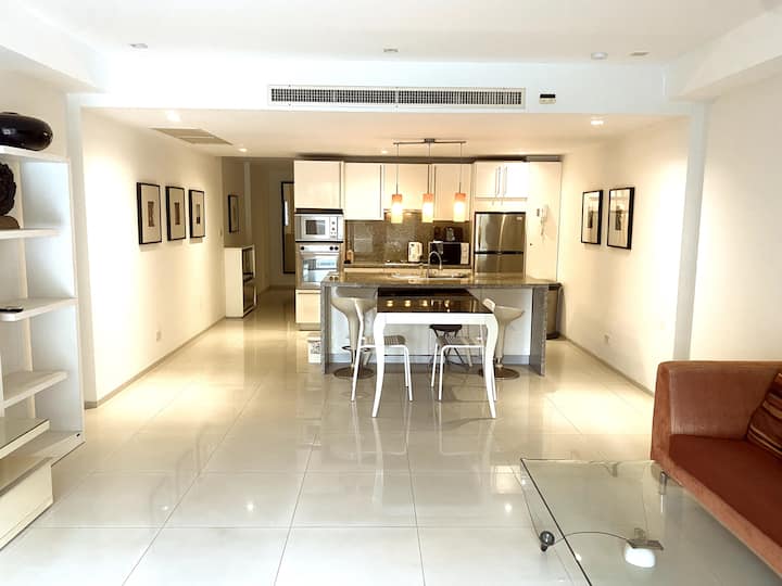 Ky apartament modern dhe elegant me 1 dhomë gjumi është vetëm 75 metra (1-3 minuta më këmbë) nga rërat e bardha të plazhit Surin, një nga zonat më prestigjioze bregdetare të Phuket. E përkryer për çifte, udhëtarë të vetëm ose familje të vogla, kjo shtëpi e ndritshme dhe plotësisht e pajisur të vë në qendër të gjithçkaje: klubet e plazhit, tregjet lokale, spa-të dhe restorantet e pabesueshme janë të gjitha brenda pak minutash. Është e thjeshtë në këtë vend të qetë dhe me vendndodhje qendrore.