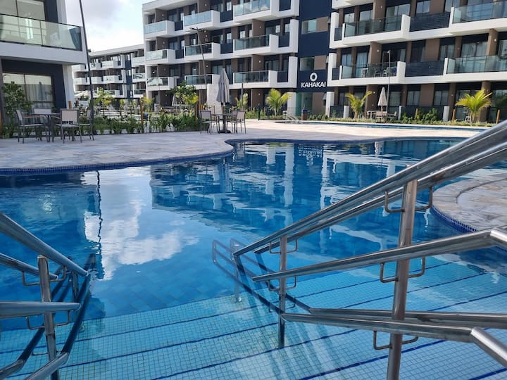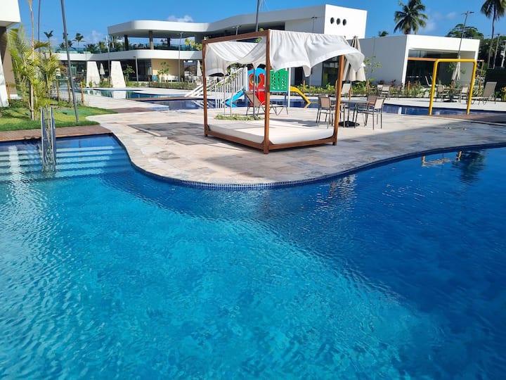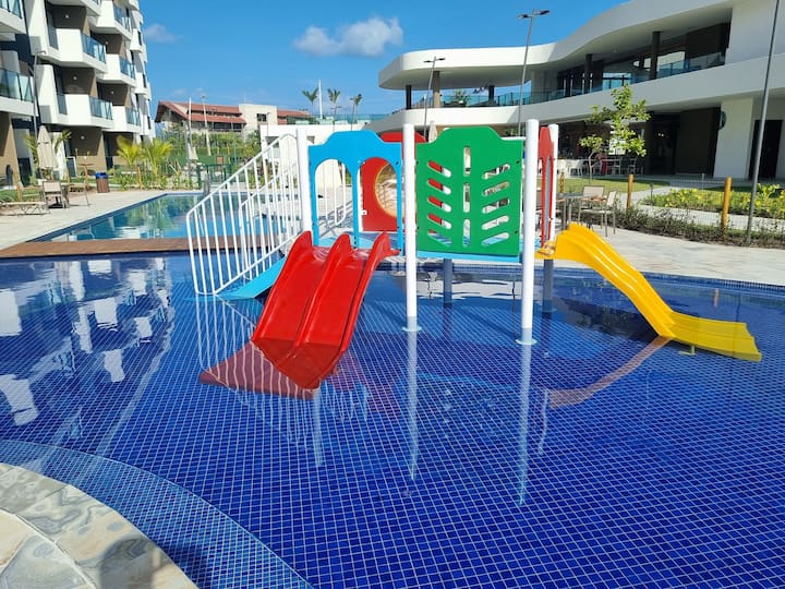 Merr një apartament të plotë në Condomínio Resort, vetëm 300 metra nga plazhi (qasje e drejtpërdrejtë) dhe pranë pishinave natyrore! Ajo strehon deri në 5 persona, një krevat dopio me krevat dopio dhe një krevat me një kuti me një bicama. E pajisur me Wi-Fi, televizor, ballkon me pamje nga pishina dhe kuzhinë të kompletuar.