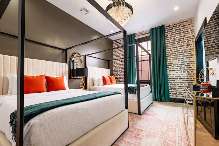 'The Krewe' është ndryshe nga çdo suitë tjetër në New Orleans me një dizajn të personalizuar të nivelit të lartë. Shijo kafenë e mëngjesit, aktivitetet e përditshme, erën e mbrëmjes, jetën e natës... ose thjesht ÇLODHU këtu. Prona jonë është e papërlyer dhe e mirëmbajtur nga profesionistë që përdorin standardet më të larta në industri. Çdo suitë do të pastrohet, higjienizohet dhe inspektohet profesionalisht para mbërritjes dhe do të përgatitet në përsosmëri me dy jastëkë dhe dy peshqirë prej pelushi për çdo kokë.
