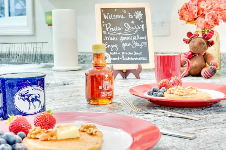 Brenda banesës, do të gjesh dhoma gjumi të rehatshme për një natë të qetë gjumi. Një kuzhinë e pajisur plotësisht me skarë petullash dhe prodhues waffle për të përmbushur ëndrrat e tua të shurupit të panjës në Vermont. Një ambient ftues ngrënieje i përsosur për mbledhje. Dhe një dhomë ndenjjeje e rehatshme për t 'u rehatuar me një film familjar! Familjet dhe qentë janë të mirëpritur!