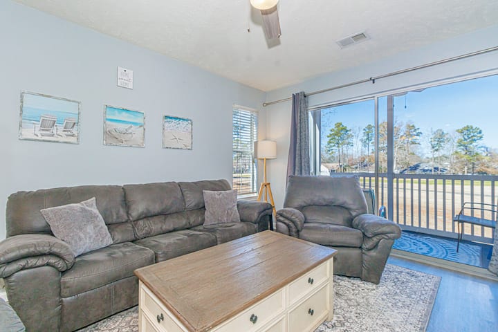 Kërkimi për pushimet e tua të ardhshme ndalet këtu! Kontrollo këtë kat të dytë, 2 dhoma gjumi, 2 banjo apartament në Myrtle Beach, SC. Ky apartament kondominial ndodhet më pak se një milje larg autostradës 501 dhe autostradës 31 (dy autostradat kryesore në zonë). Jo vetëm që është brenda disa minutave të fushave të shumta të golfit, por është gjithashtu e vendosur në mënyrë të përshtatshme në një fushë golfi - klubi i golfit ujor i pacenuar i hapur që nga viti 1987 me 3 kurse 9 vrima, diapazoni i vozitjes dhe clubhouse! Apartamenti kondominial është më pak se 10 minuta me makinë deri në plazh dhe shumë atraksione turistike. Waterway Village ka një pishinë të brendshme dhe të jashtme, fusha tenisi/pickleball dhe ambiente të gjelbra, të gjitha brenda një shëtitjeje të shkurtër nga apartamenti kondominial.