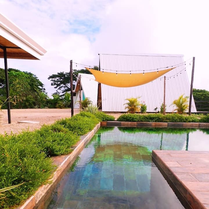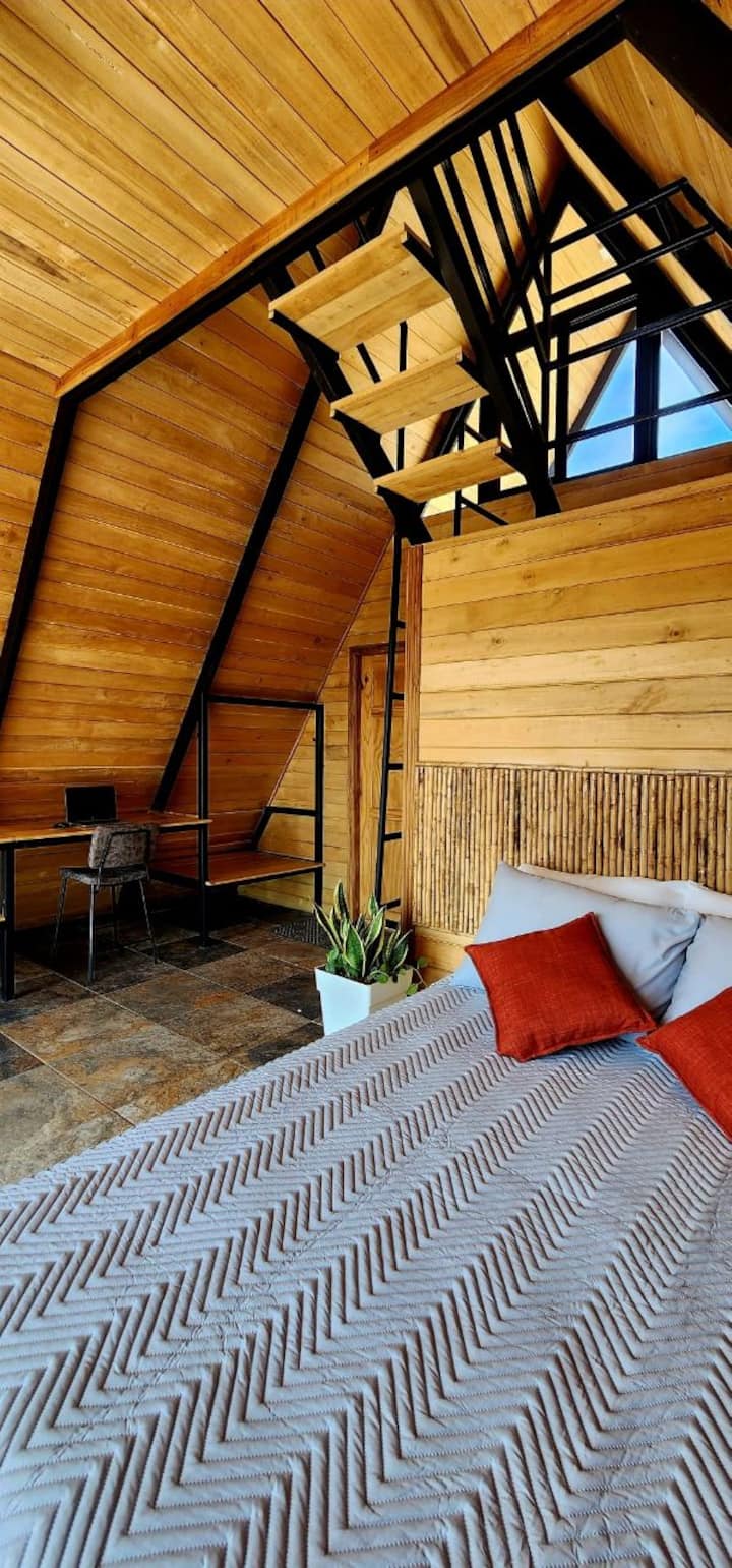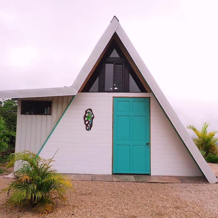Burri im, 2 fëmijët tanë dhe unë ishim në rrugë për 3 vjet, duke zbuluar Amerikën e Veriut. Në vitin 2021 u transferuam në Kosta Rika, për të zbuluar Pura Vida. Na pëlqeu aq shumë sa u vendosëm në fermën e miqve tanë për të qenë pjesë e projektit të tyre. Dhe pjesë e këtij projekti është marrja me qira e kabinave kornizë A, për të cilat unë jam përgjegjës.
