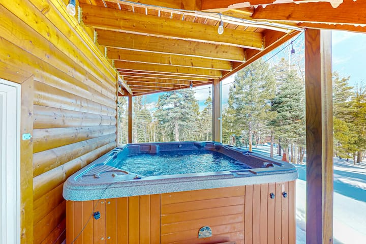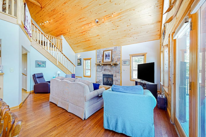 Mountain-view 3BR with hot tub, deck, & firepit