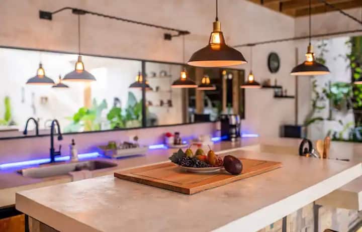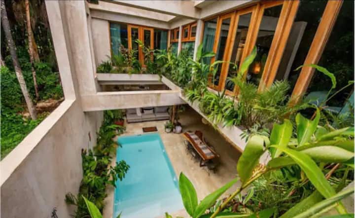 Të gjitha dhomat e gjumit në këtë vilë kanë hapësira të mëdha, banja private me madhësi të plotë, tualetet e tyre dhe pajisjet cilësore të banjës që ofrojnë mundësi të shumëfishta dushi pas një dite të gjatë në diell. Të gjitha dhomat e gjumit të vilës ndodhen në katin e dytë dhe të tretë. Dhoma e përbashkët e jashtme në katin e poshtëm ka një ndjesi të madhe të hapësirave të mëdha nga dyshemeja në tavan me shumë vende unike dhe të rehatshme për t 'u çlodhur, për t' u ulur, për të lexuar, për të gatuar ose thjesht për të pushuar. Në mbrëmje, lëre ndriçimin shumëngjyrësh të ambientit të krijojë një hapësirë që pasqyron një atmosferë të shkëlqyer. Luaj në tavolinën e madhe dhe planifiko një zhytje në pishinë pas darkës. Nëse je me fat, lëre Nënën Natyrë të të befasojë me një dush periodik pyjor tropikal që bie brenda në plantacionet e mëdha me gjethe dhe në pishinë. Një vend i shkëlqyer i përkryer për të ndarë momente të jashtëzakonshme së bashku. Në kuzhinë, mund të gatuash rehat në ishullin e pajisur me koncept të hapur të kuzhinës lundruese.
