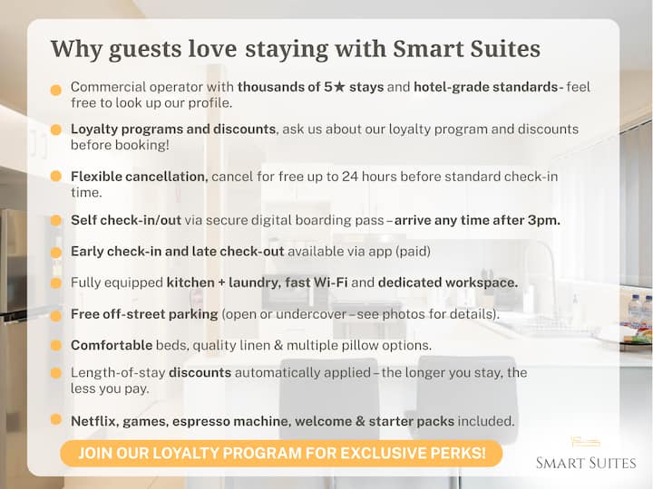 Si ofrues akomodimi i korporatave të mesme, ofrojmë apartamente moderne, të pastruara profesionalisht dhe të pajisura mirë me parkim jashtë rrugës. Të vendosura brenda 15-20 minutash nga qyteti me makinë, apartamentet tona janë lehtësisht pranë transportit publik dhe brenda distancës së ecjes nga dyqanet dhe opsionet e ngrënies. Përveç kësaj, ofrojmë fatura tatimore për të gjitha qëndrimet. Na vjen mirë që je me ne!