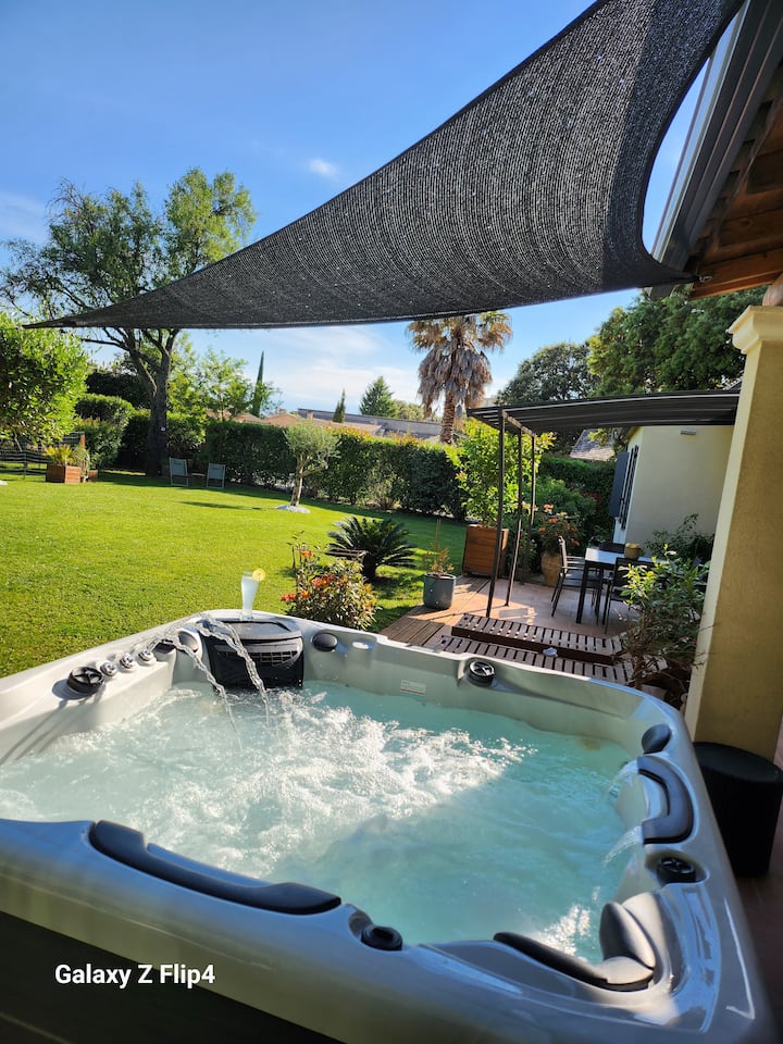 Relaksohu me dushin e jashtëm dhe vaskën me hidromasazh.