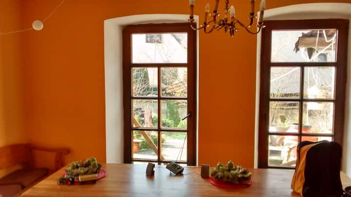 Shtëpi e vjetër në mes të Jeckenbach, shumë e veçantë, me përrua para derës, tarracë e madhe për festa komode, pjekje në skarë (3 skara janë në dispozicion, qymyr druri sill mysafirët) dhe banja dielli. Kultura është në qytetet përreth. Në vetë Jeckenbach, shfaqet "pa fjalë teatri" i fshatit. Por vetëm në pranverë dhe kryesisht të shitur. Ka një fqinj shumë të mirë dhe një atmosferë origjinale fshati. Kushtoji vëmendje pushimit të natës (nga ora 10 pasdite) në mënyrë që fqinjët të mund të flenë. Deri në 25 vizitorë mund të akomodohen në 4 dhoma gjumi dhe në papafingo studio (2+5+6+4+8. Zbritje speciale sipas kërkesës deri në 50% për 1-3 persona dhe nga 5 ditë. Kërko zbritjen dhe unë do të bëj një ofertë. Shtëpia është e shkëlqyer për një pushim më të shkurtër ose më të gjatë në rrethinat e qeta të fshatit.