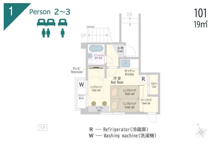 101 Pranë Shinjuku/Ikebukuro.6 minuta më këmbë nga stacioni, apartament i ndritshëm 1F 19 metra katrorë, 1-3 persona, i përshtatshëm për të ngrënë dhe për të jetuar përreth.