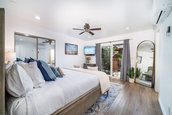 Apartament kondominial modern me mobilie luksoze, me ajër të kondicionuar dhe ngrohje që ndodhet më pak se 3 blloqe larg plazhit! Shijo paraqitjen e gjerë me një televizor 4K 75", Xbox, Ps4 dhe bar kafeje. The Primary BR ka një krevat CA King Tempur-Pedic, ballkon privat dhe një banjë en suite. 2nd BR ka gjithashtu CA King! Dëshiron të bësh një xhiro me biçikletë për në Main St apo në plazh? Kemi biçikleta elektronike me qira dhe të gjithë aksesorët e plazhit që të duhen në garazh! Prenoto tani dhe shijo një pushim në plazh sot në HB!
