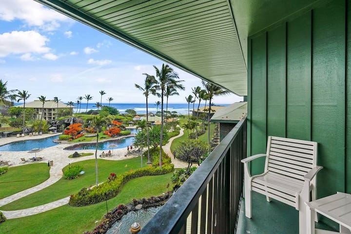 Çlodhu në verandën tënde private me pamje nga pishina dhe Oqeani Paqësor, shijo flladet e oqeanit dhe përjeto shtëpinë tënde havajane larg shtëpisë. Kjo është një nga dhomat e pakta në resort me menaxhim privat, në katin e sipërm dhe me pamje nga oqeani.