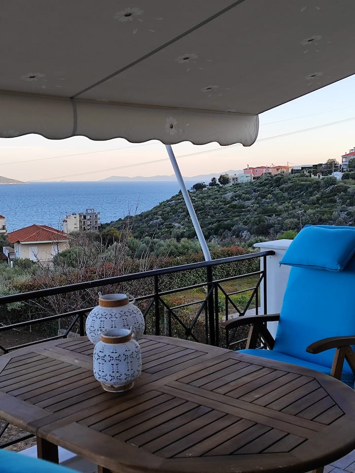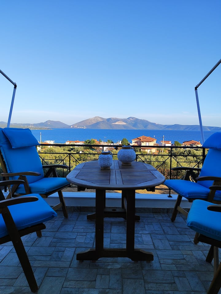Pamje nga Gjiri Evia dhe shtëpi çlodhëse